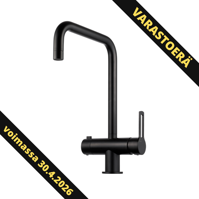 Tapwell RIN984 keittiöhana pesukoneventtiilillä tyylikkäässä mattamustan sävyssä. Kääntösäde 60°, 90° tai 120°.