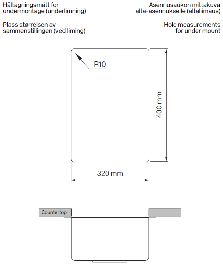 Allas sopii kaikkiin asennustapoihin. Upotus, huullos- sekä alta-asennus (katso kuvat). Paketti sisältää koripohjaventtiilin, vesilukon sekä ylivuotosuojan.